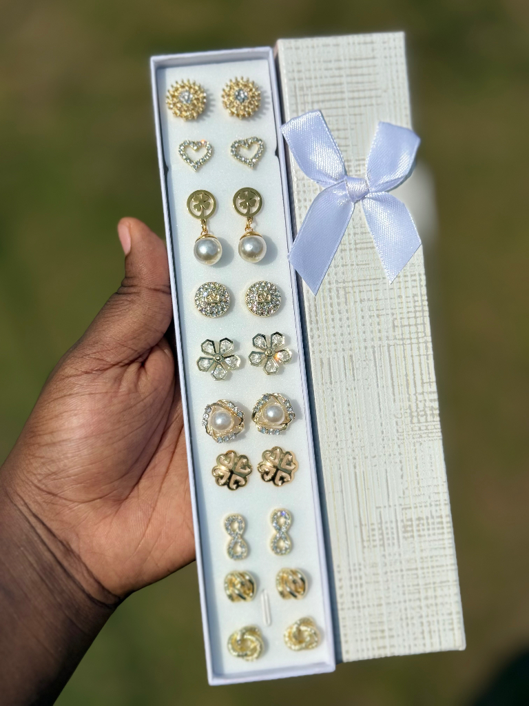 Gold earrings stud set